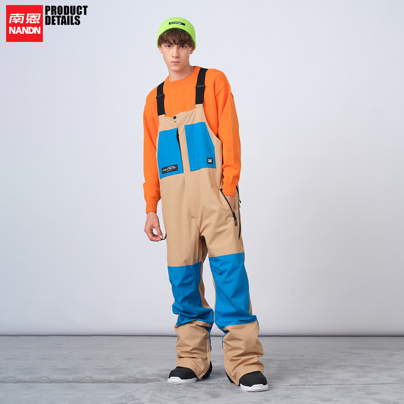 NANDN Nanen 22 new products skiing baby bag pants veneer jumpsuit waterproof wear-resistant loose men and women contrast color breathable