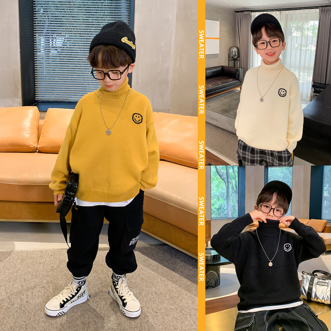 Left West Boy Clothing Boy High Collar Sweater 2021 New Children Thickened Knit Undershirt Autumn Winter Style Warm Blouse