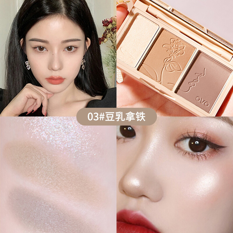 Three-color highlight repair volume flash powder face fine flash burst brightening matte shadow nose shadow three-in-one plate