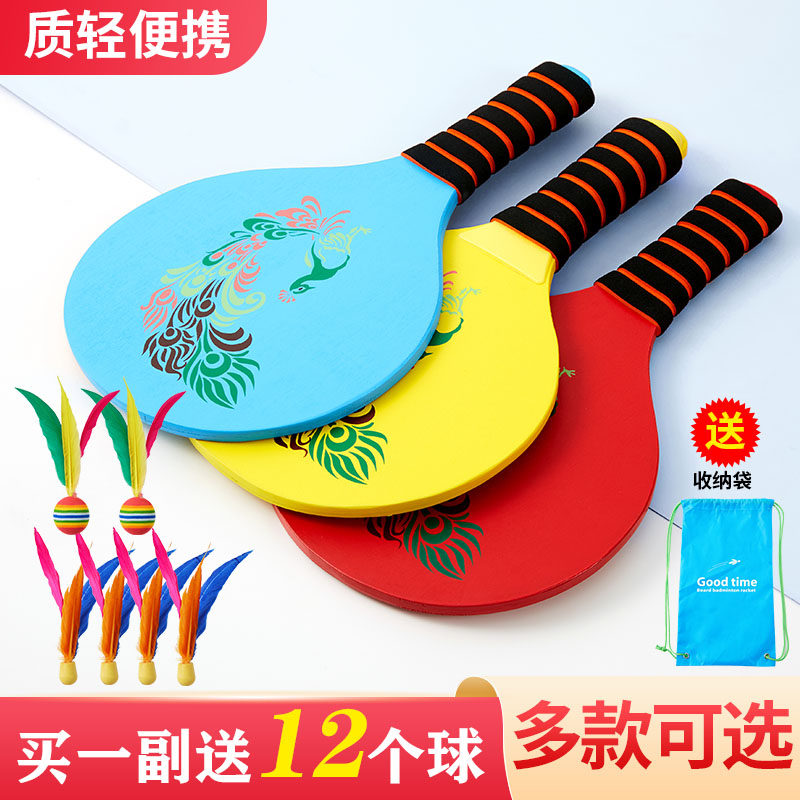 New thickened plate plume bat peacock suit upscale board plume ball sports fitness solid wood delivery board badminton bum bag