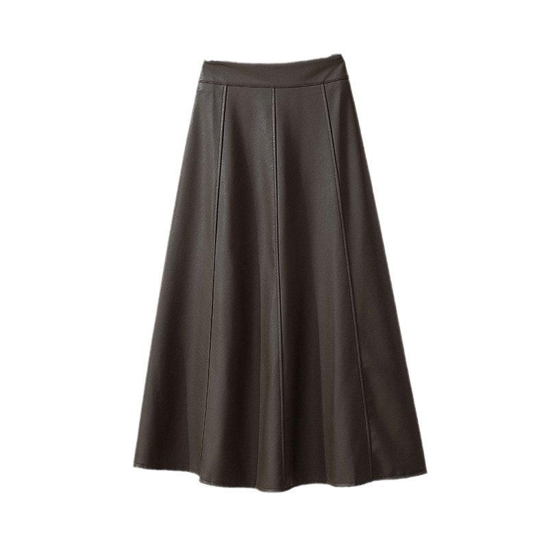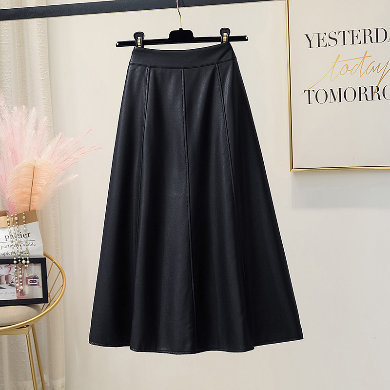 High-end PU leather skirt ladies autumn a-line skirt 2022 new long skirt umbrella skirt mid-length explosive skirt