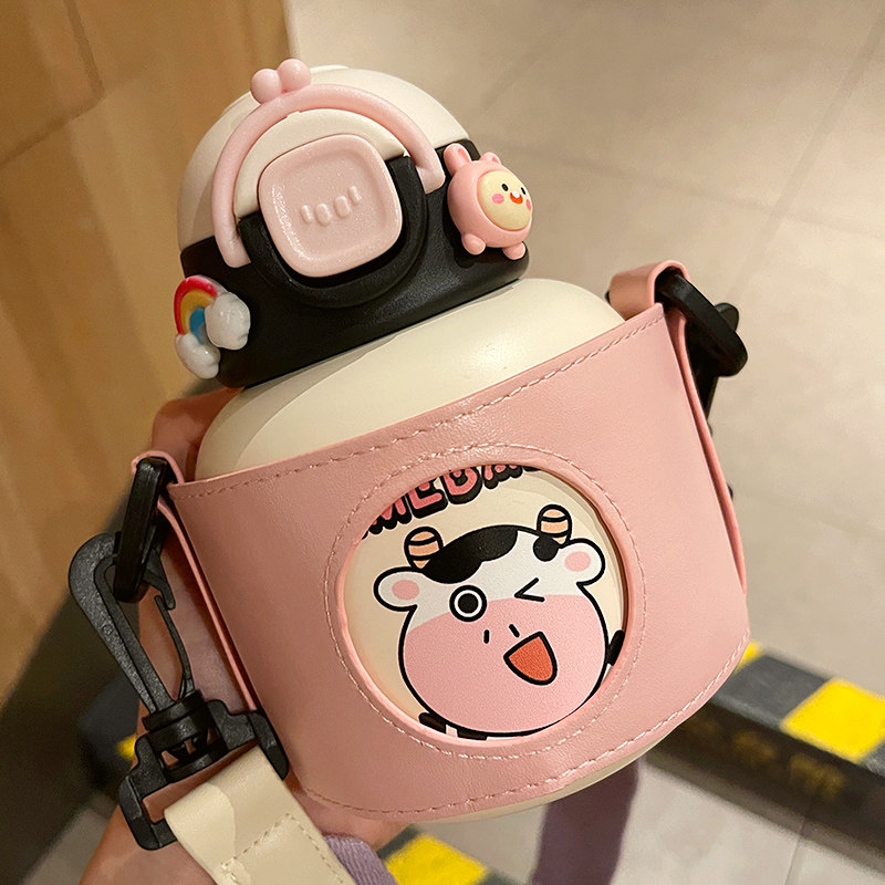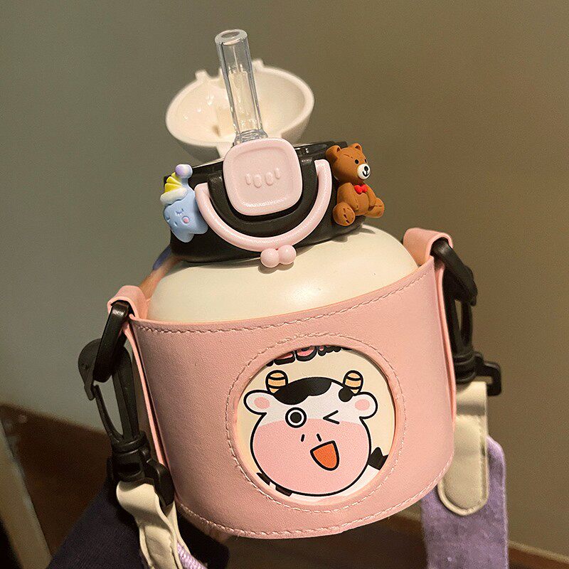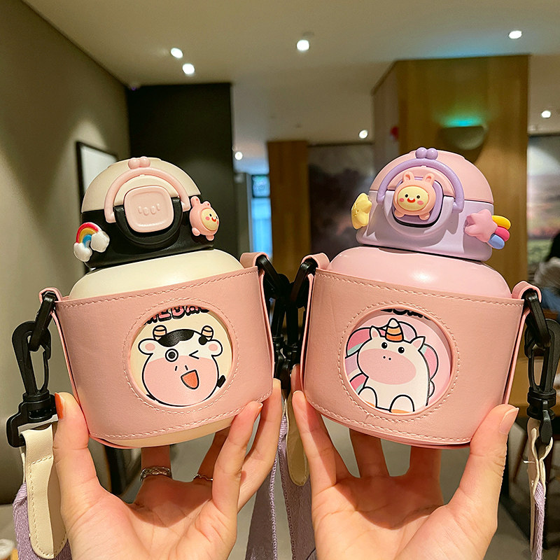 Cute high - color insulation cup female students can portable small kettle straw cup 316 stainless steel large belly cup