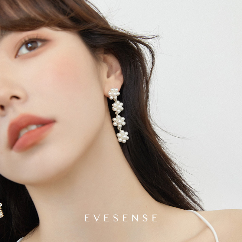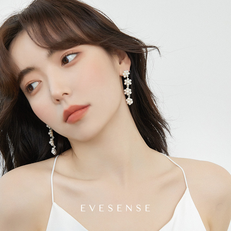 EVESENSE high-end sense of pearl small wreath earrings long version to modify the face temperament niche design new earrings - Taobao