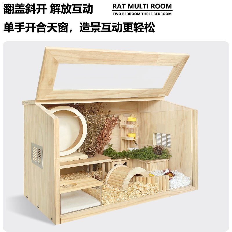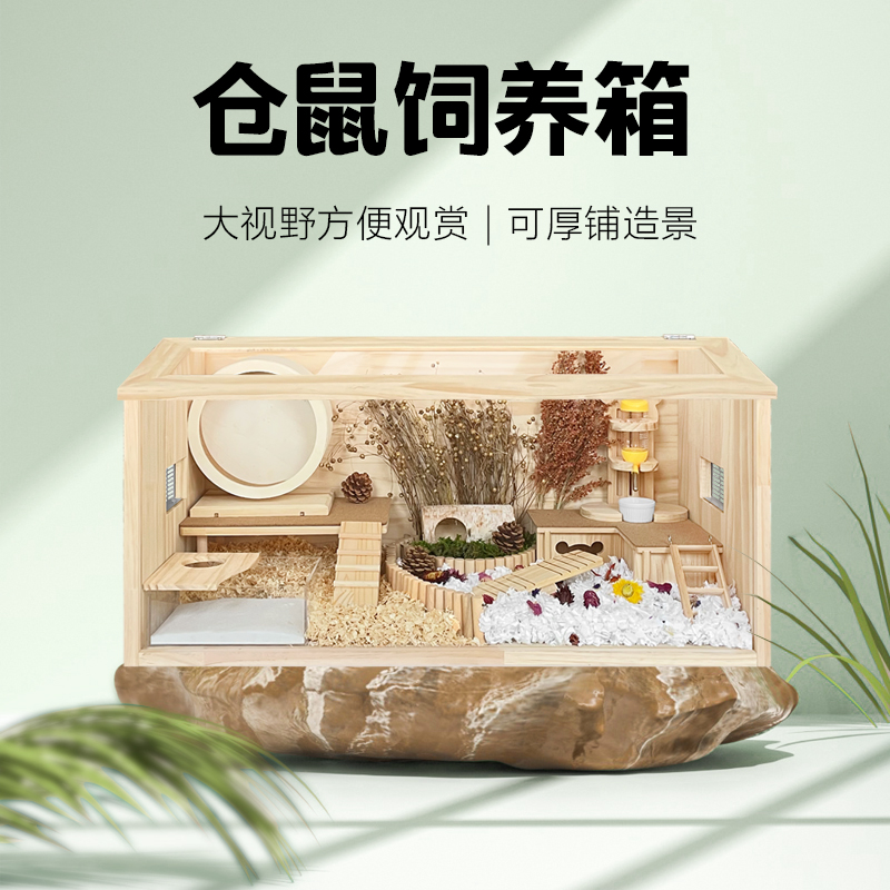 Rat Hamster Rearing Box Cage Gold Silk Bear Huge Villa Lodge Solid Wood Landscape Hamster Cage Insulated Solid Wood Box