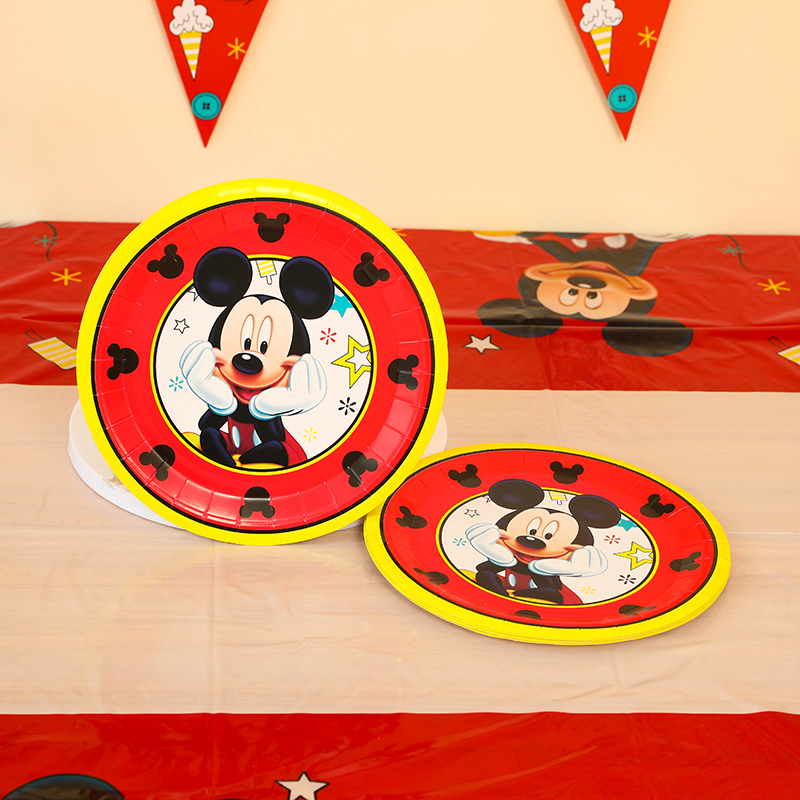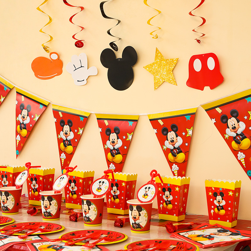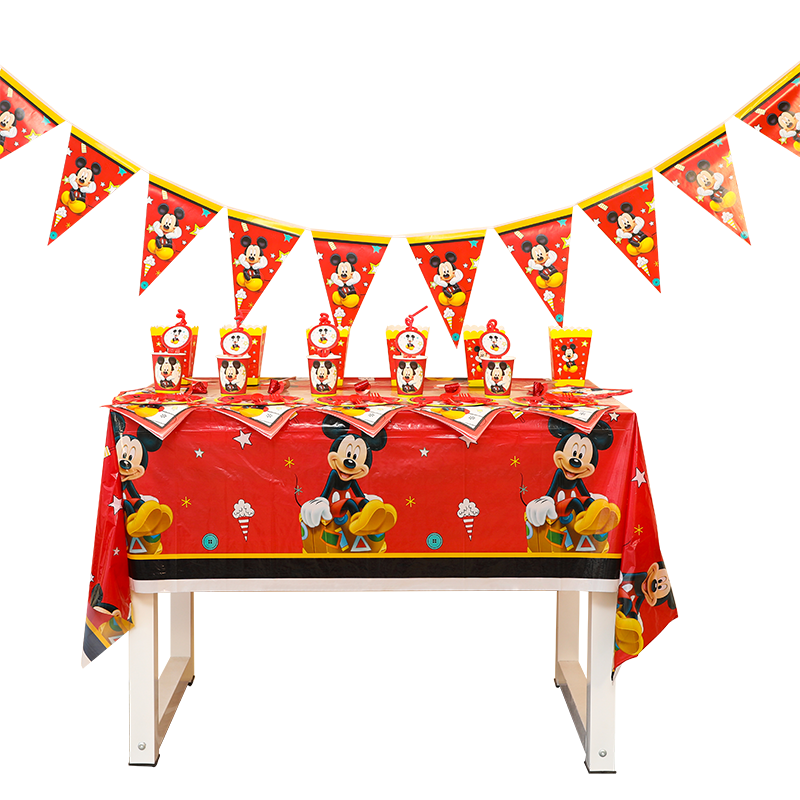 Red Mickey paper cups 10 packets of red Mickey meal knives 10 packets of red Mickey forks 10 packets of red Mickey 7 inch plates 10 packets of red Mickey flags 1 packets of red