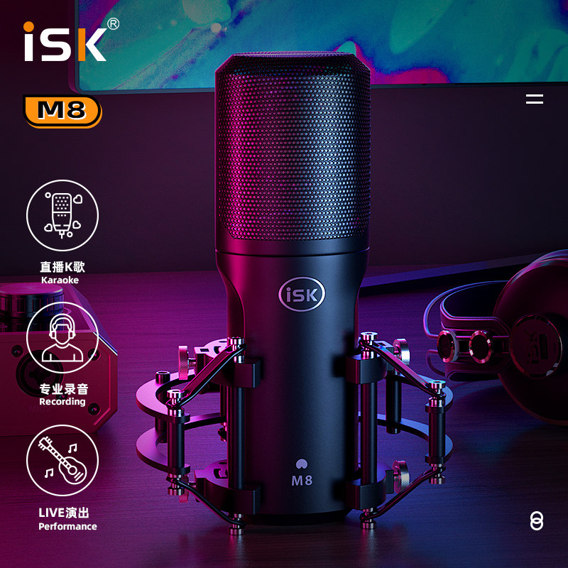 ISK M8 Capacitor Microphone Live Microphone Aiken Sound Card Full Equipment Audio Special m8 Set