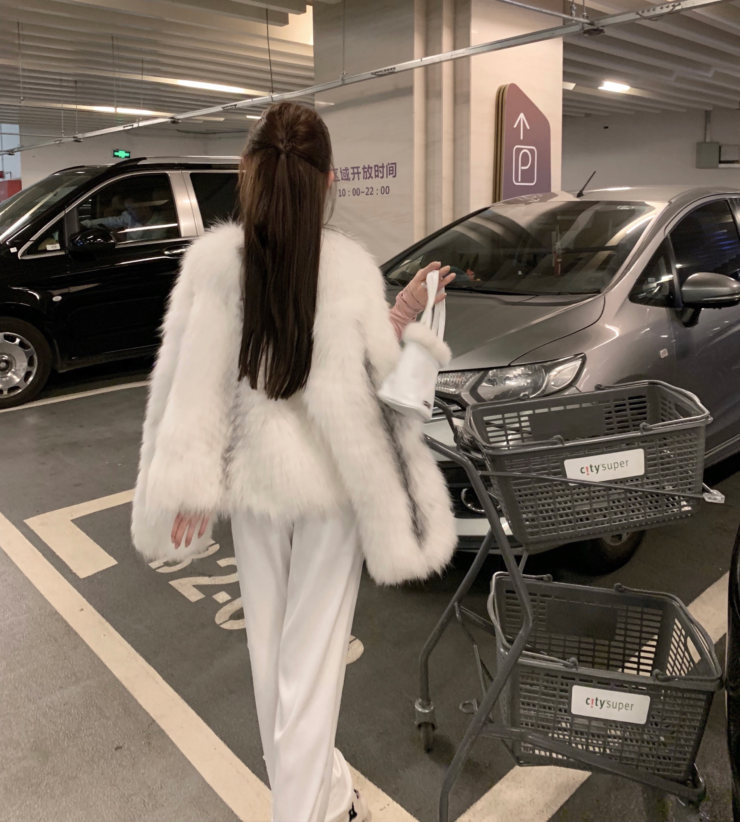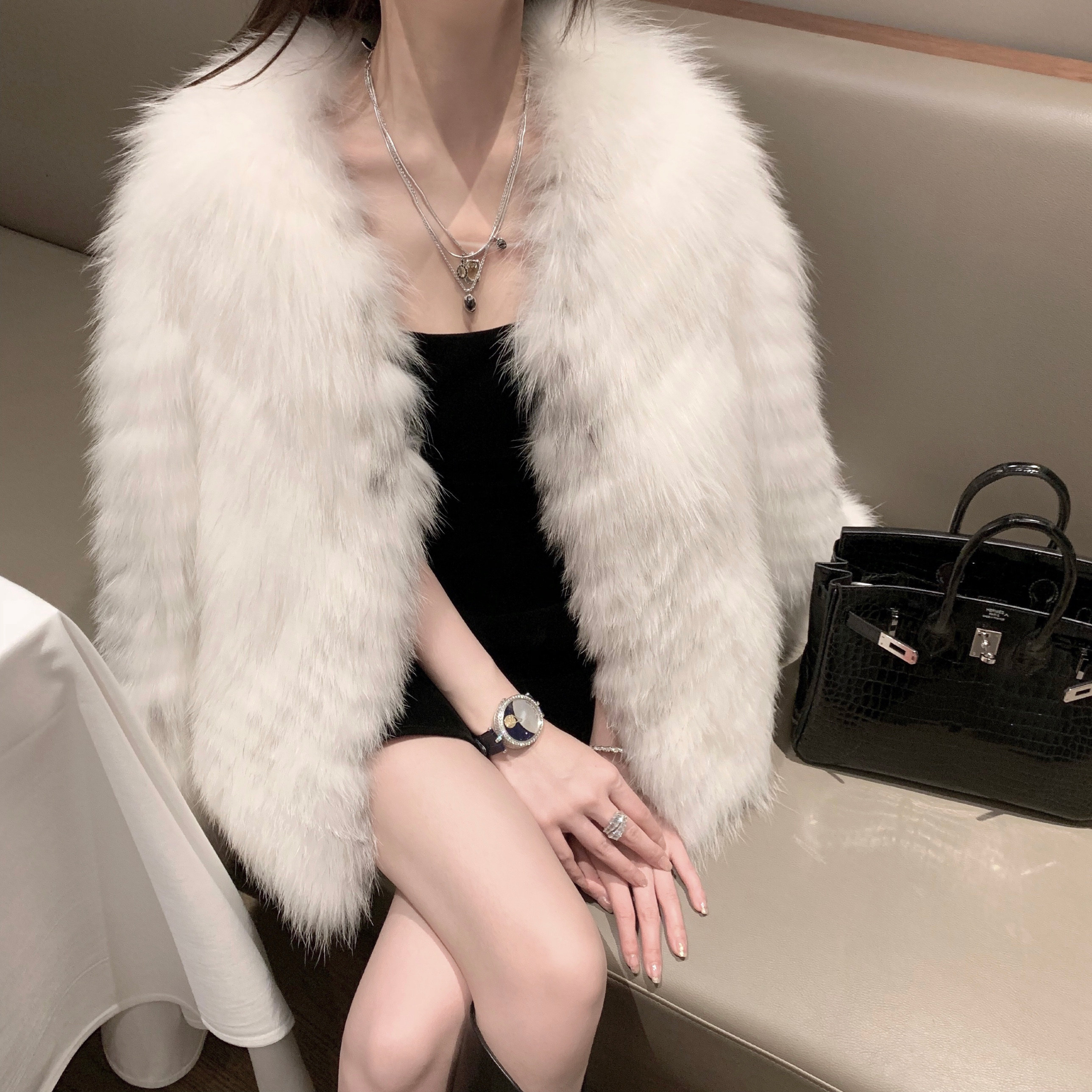 CHICYOU (Lux series imported marble cream fox) V collar young fox fur straw coat female winter