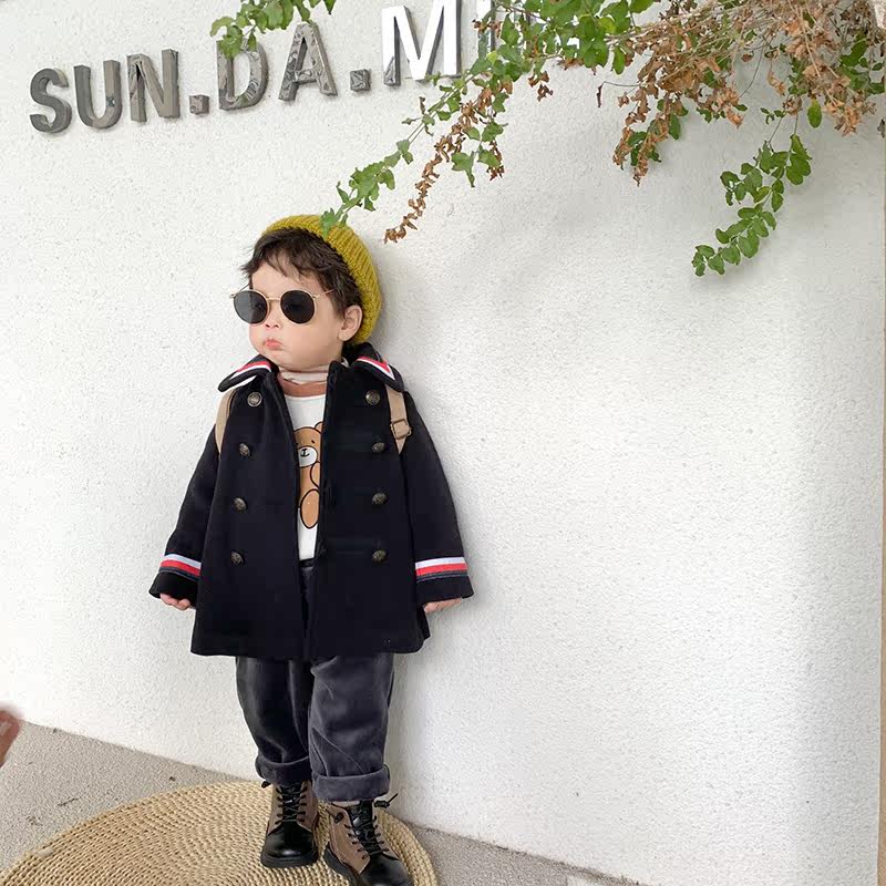 D AXiaoxuan Baby Boy Clothing Children's Retro College Wind Fur Coats Baby Blue Jacket Foreign Air Korean Version