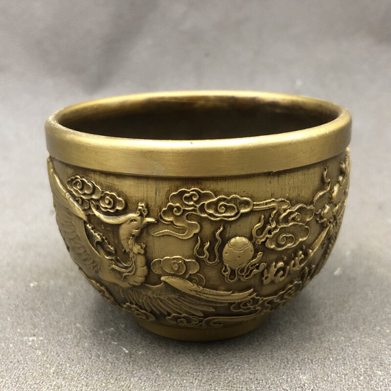 Antique Miscellaneous Wine Cups Water Cups Small Handheld Pieces Longfeng Cup Tea Cups Home Craft Decoration Retro Bronze