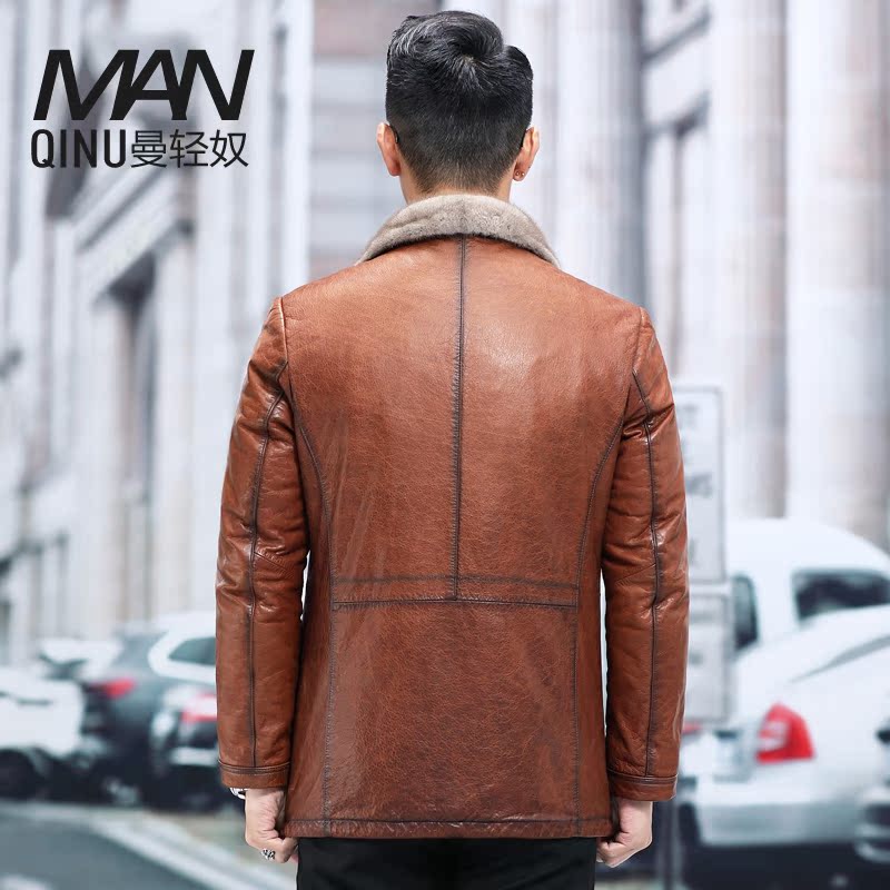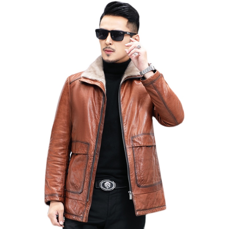 Haining genuine leather jacket men's mink liner mid-length sheep fur one-piece lapel business casual mink jacket