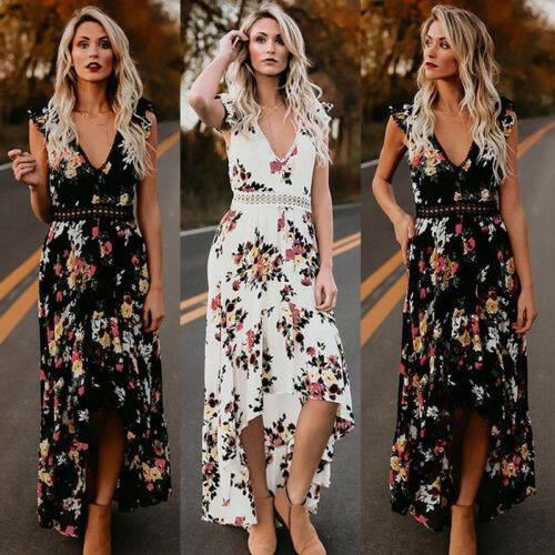 Summer New Women Elegant Vintage Boho Long Maxi Dress Sexy B