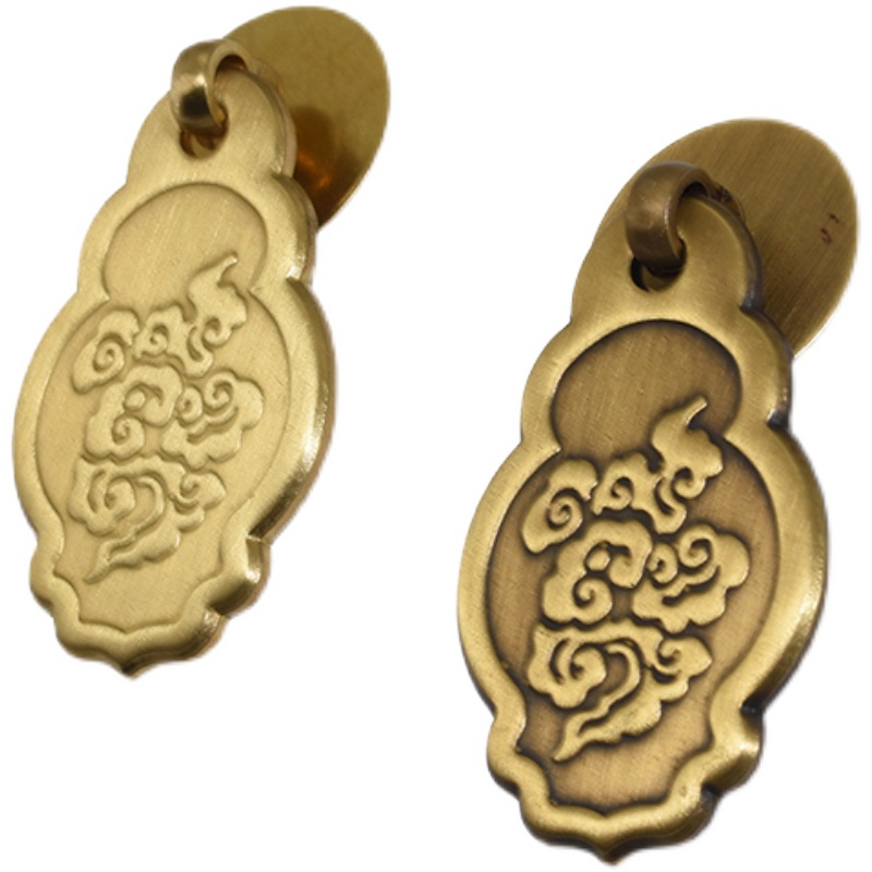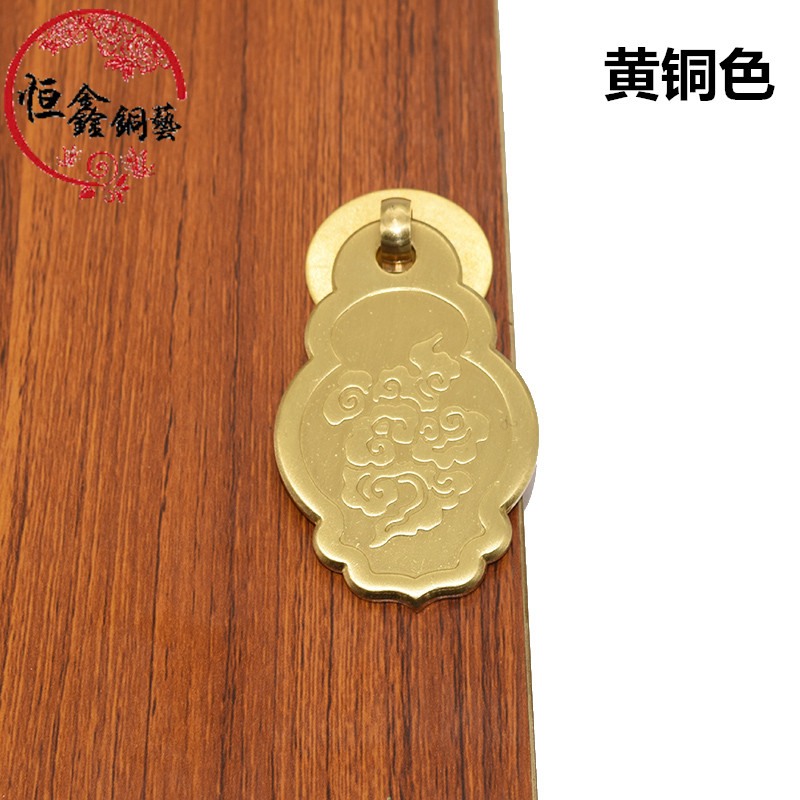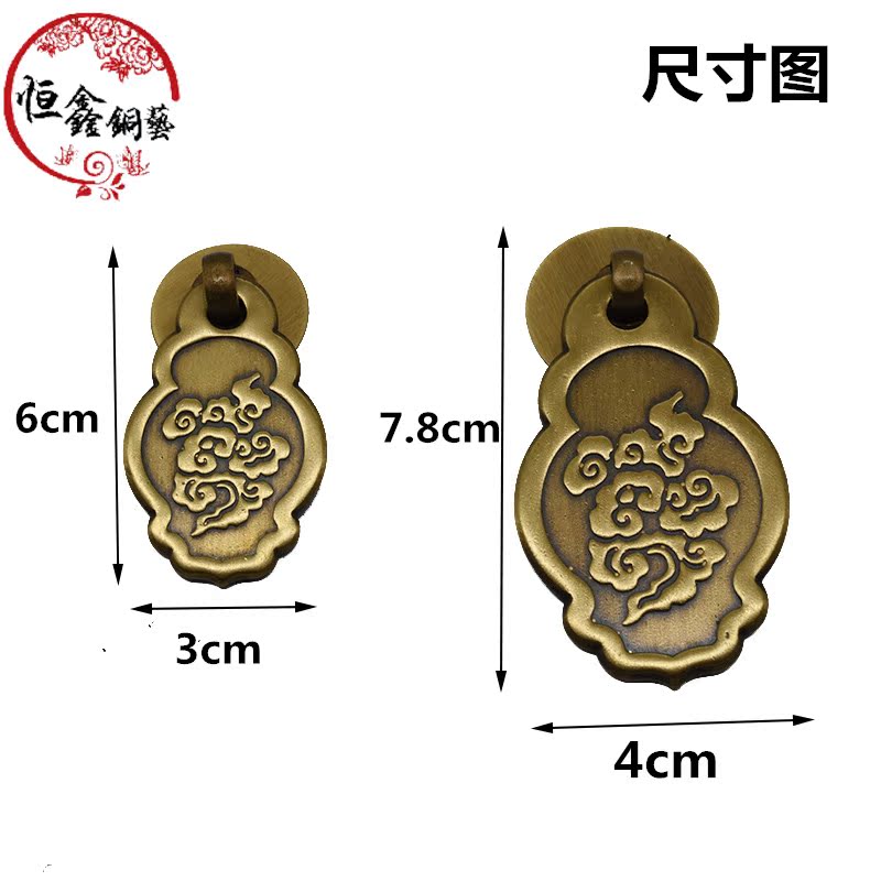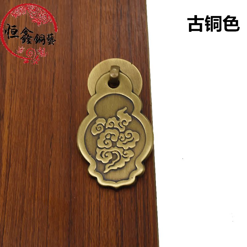 Chinese antique pure copper drawer handle classical furniture cabinet door bedside table auspicious cloud carved tag pendant copper handle