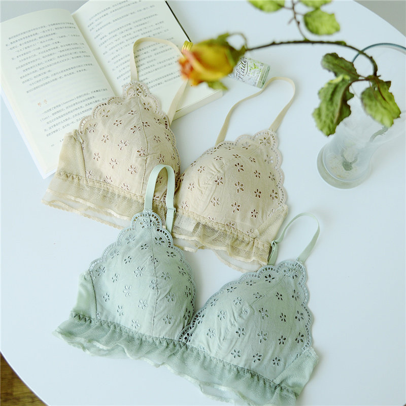 Gentle fairy ~ simple cotton small chest gathers and collects auxiliary breasts to prevent sagging bra without steel ring comfortable girl underwear