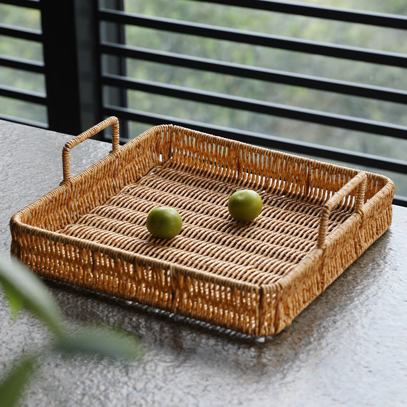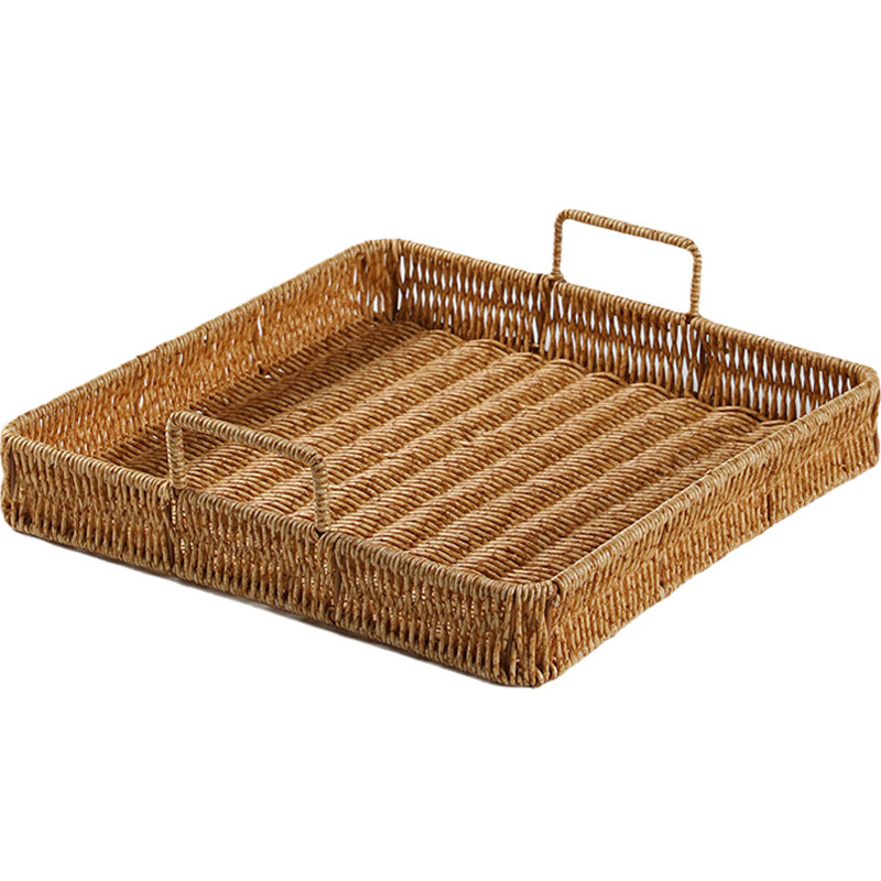 Nordic Care Tray Tea Table Fruit Pan Imitation Vine Bread Containing Basket Handle Rectangular Dish Cutlery Drain Pan