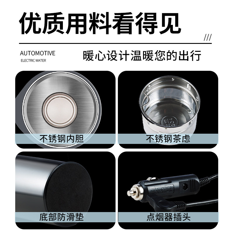 Vehicular burning kettle 12v car 24V large wagon universal electric heating water glass intelligent heating insulated household water boiler