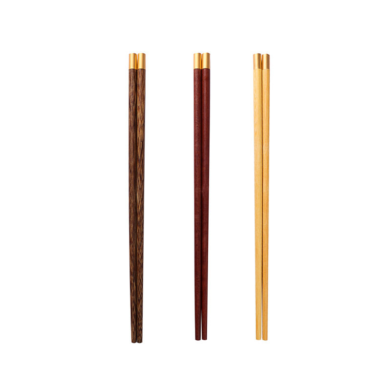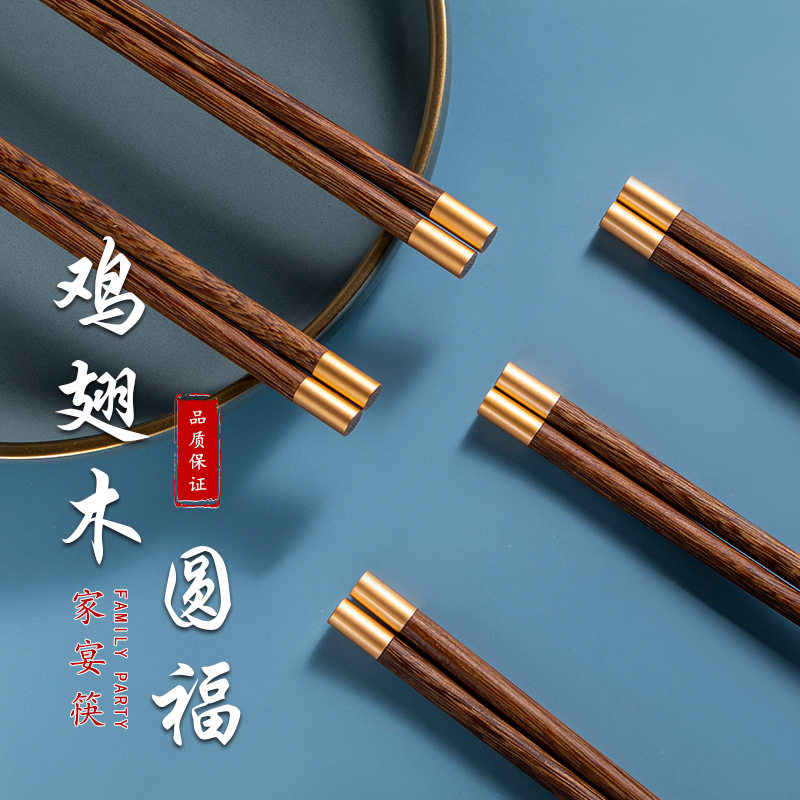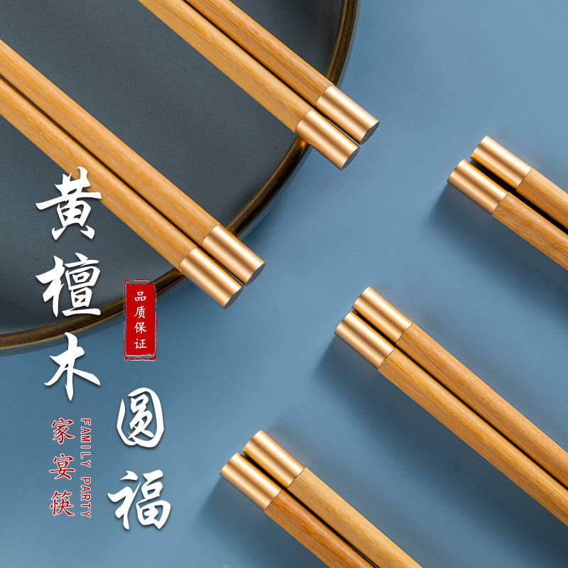 Chinese chicken wing wood household Fujia banquet chopsticks yellow sandalwood gift Chinese style metal head mahogany chopsticks tableware 10 pairs