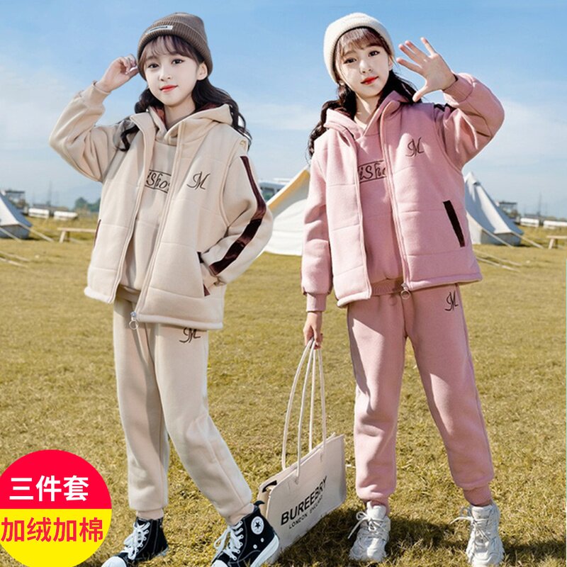 Girls' fleece sweater suit winter clothes Western style middle-aged children's baby winter thickening two-piece warm clothes fashion