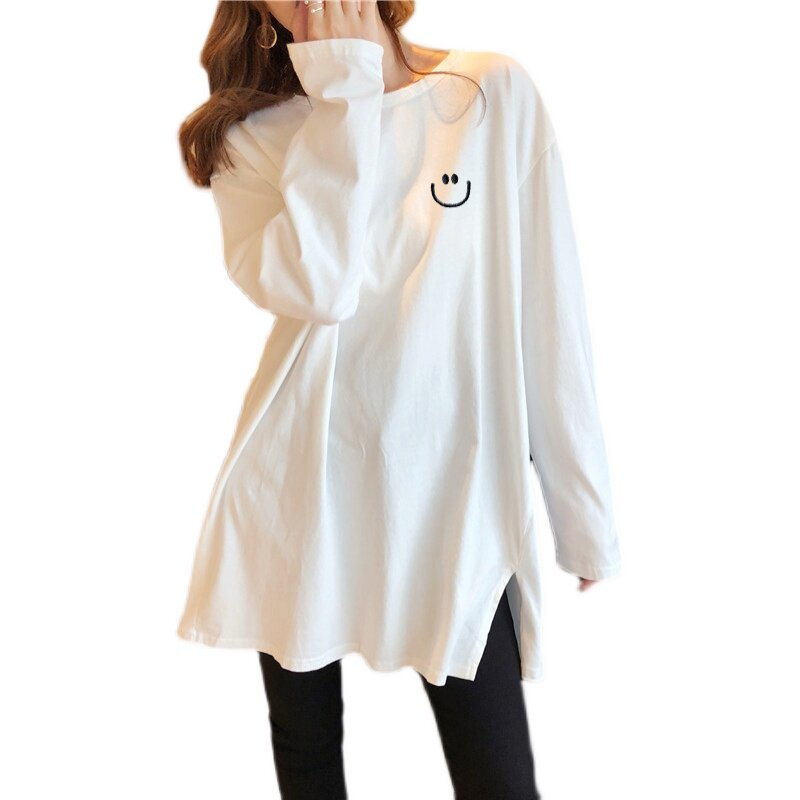 Maternity top 2021 new Korean version loose maternity T-shirt German velvet mid-length version split bottoming shirt autumn and winter