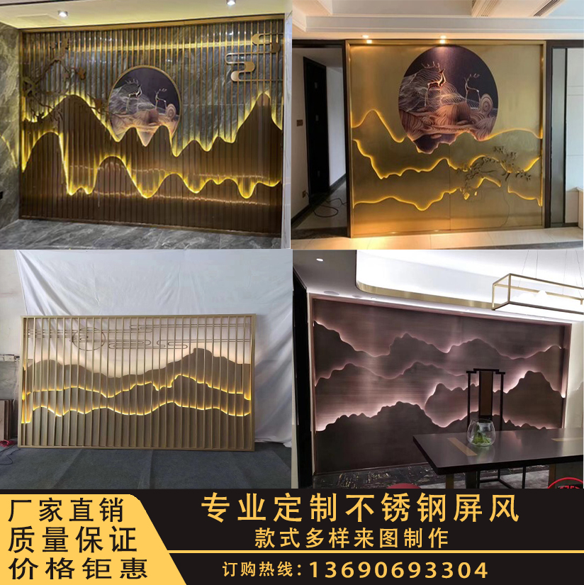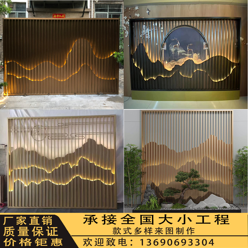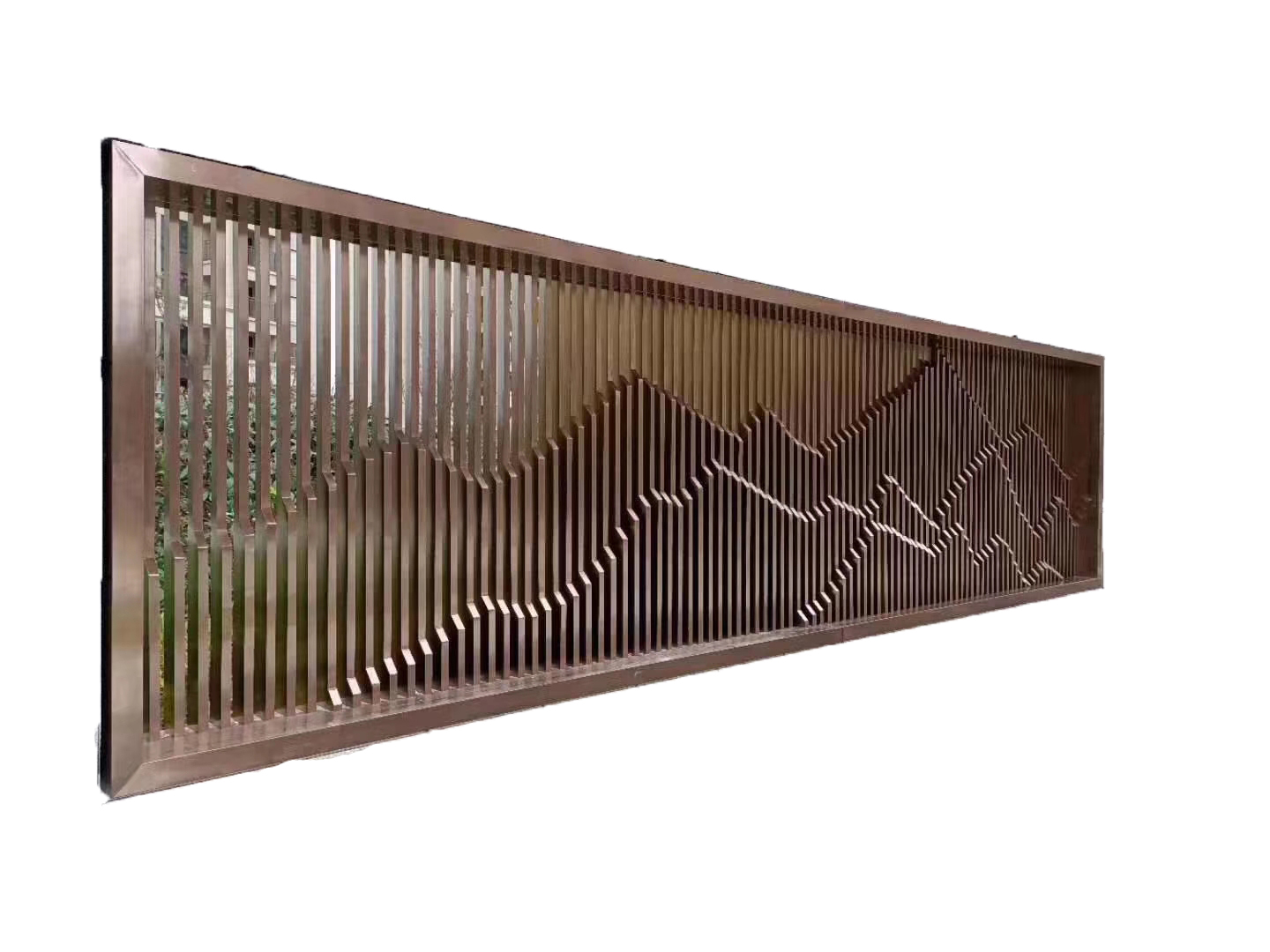 Custom Stainless Steel Fake Hills Screen Wind Mountain Water Styling Shadow Wall Background Wall Outdoor Partition Hall Metal Grilles Courtyard