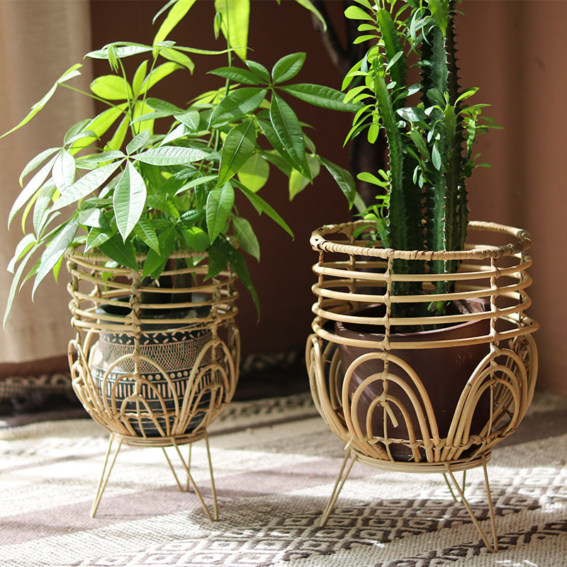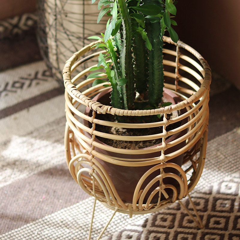 Creative rattan flower rack single plant flower pot rack indoor living room balcony floor flower basket decoration ornaments Nordic