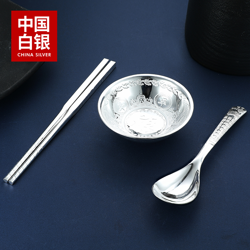 China Silver Group Co., Ltd. Baifu Foot Silver 999 Bowls Chopstick Suit Pendulum