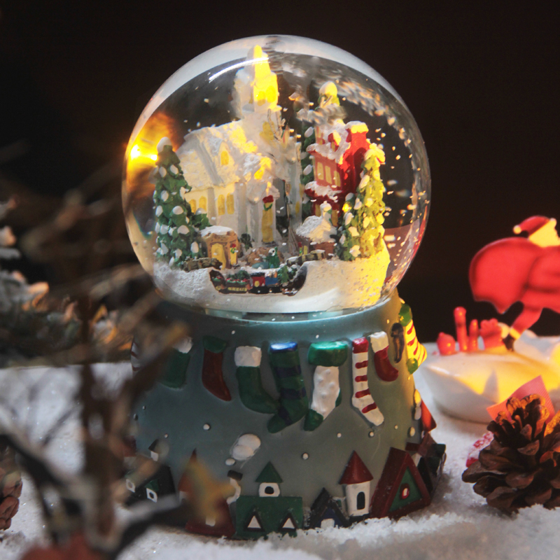 Snow house classic version rotating snow light snow house Bluetooth electric integrated function train church classic version snow light train church church Bluetooth electric integrated function Dickens classic version floating