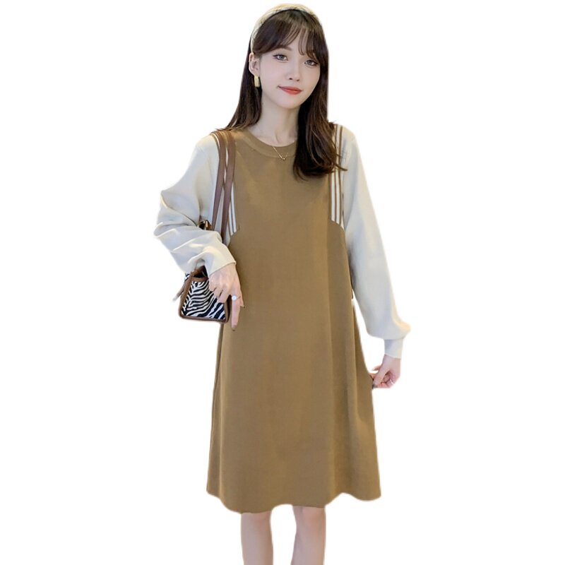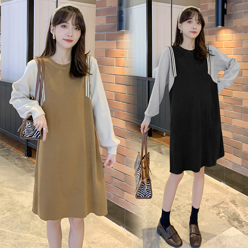 A large number of spot real shots 692 pregnant women mid-length splicing fake two-piece knitted loose sweater skirt