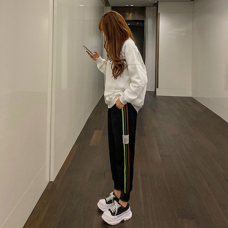 2021 new autumn maternity pants women's plus velvet thickened grid feet lamb velvet casual harem pants trousers tide mom