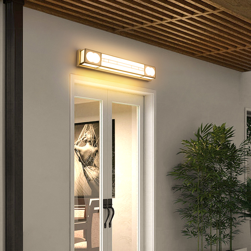 Door lights entry door front lights new Chinese square balcony stairs LED all copper horizontal mounted vertical wall lights