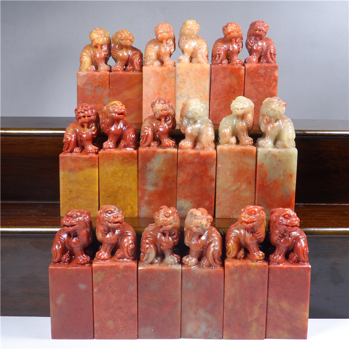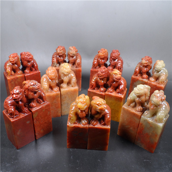 Gold stone seal carving Shoushan stone name chapter Zhejiang safflower stone brave ancient beast button head seal calligraphy and painting chapter seal cutting chapter material