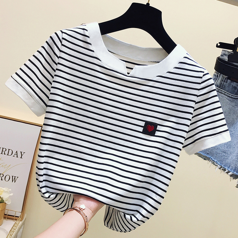 gkfnmt Poleras Mujer Tshirt Femme 2021 Stripe Female T Shirt