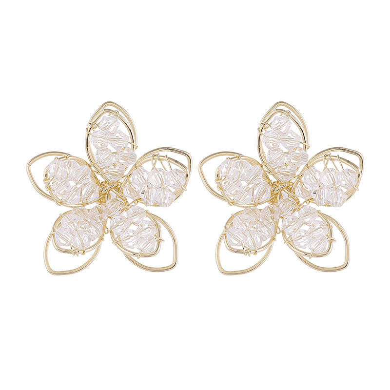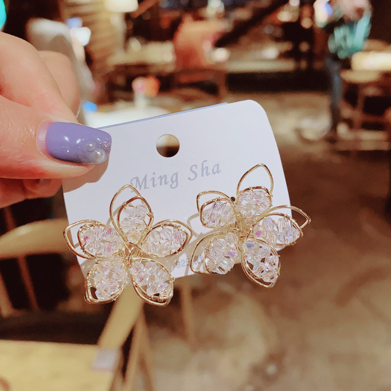 s925 Petal Korea East Gate Crystal Hollowed-out Flowers Earrings Super Fairy Silver Needle Ear Pin Small Fresh Temperament Ear Pendant