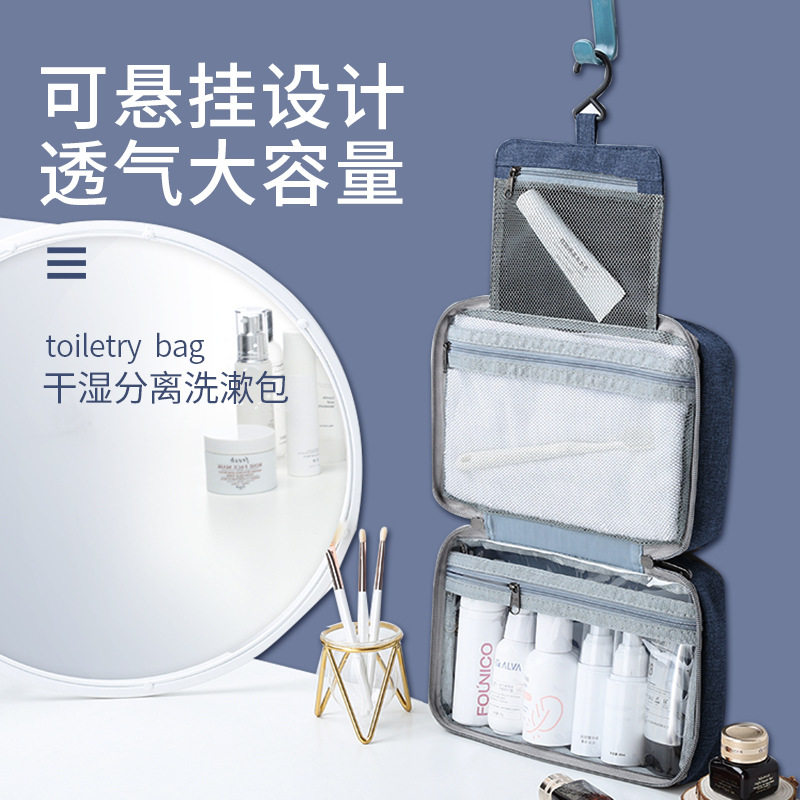 Travel waterproof belt hook wash bag men's dry and wet separation portable large-capacity women's cosmetics storage bag