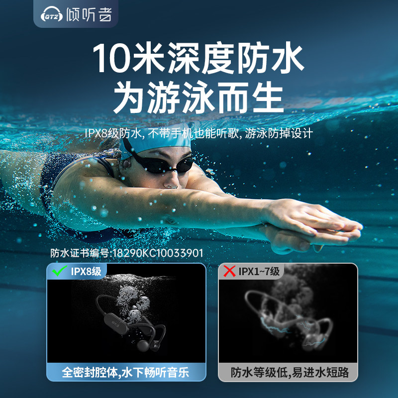 Listener 2022 new bone conduction Bluetooth headphones Wireless Sport Swimming running fitness Bring your own memory Not in ear type Waterproof Professional Bone Sensation Bone Sensing Earbone Underwater Special 2021 True
