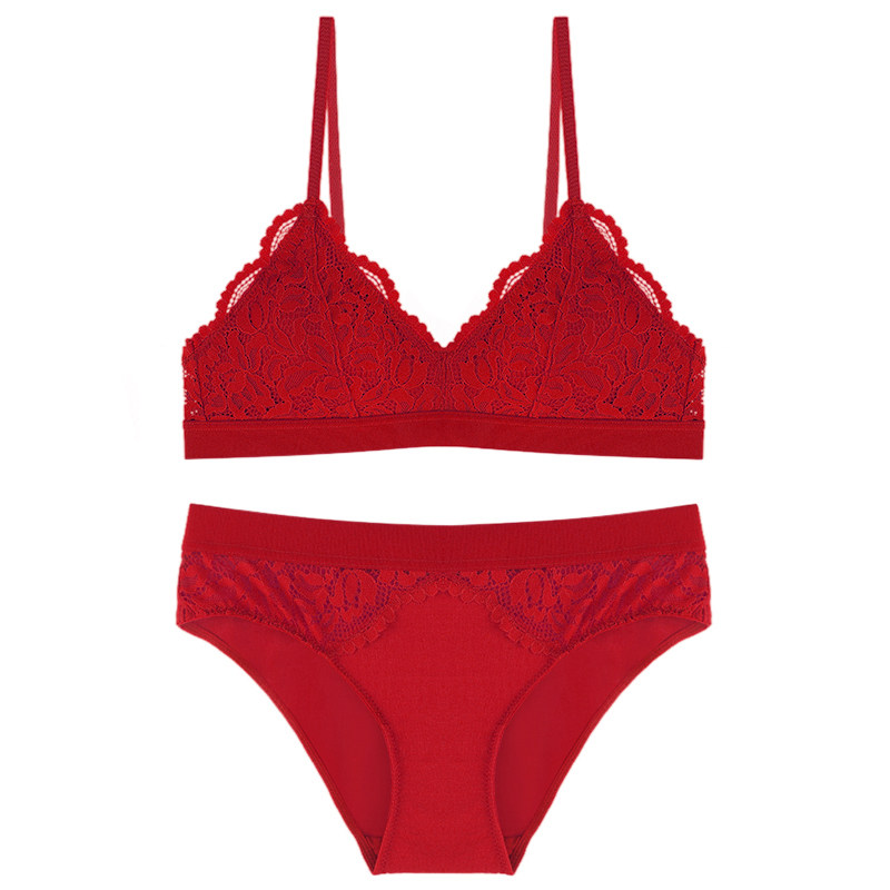 KOIBELL French red underwear suit lace natal year wedding bride small chest gathered bra sexy