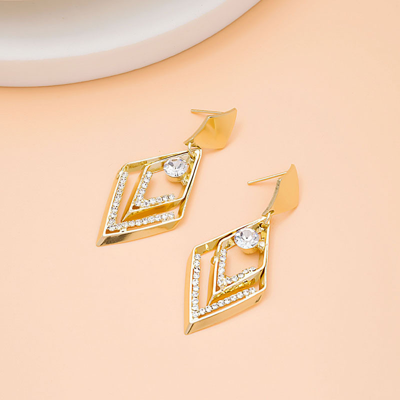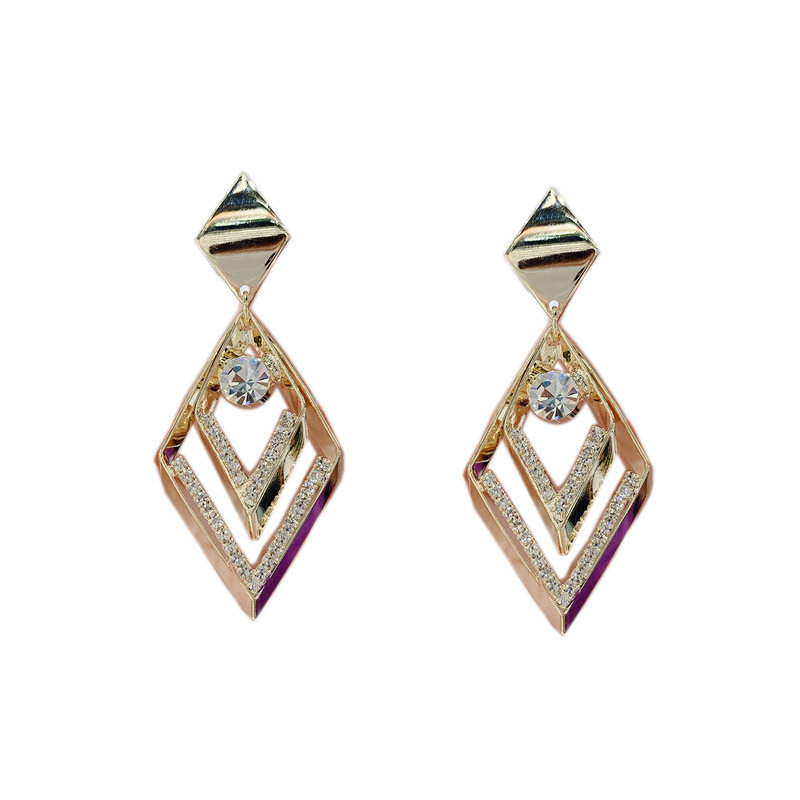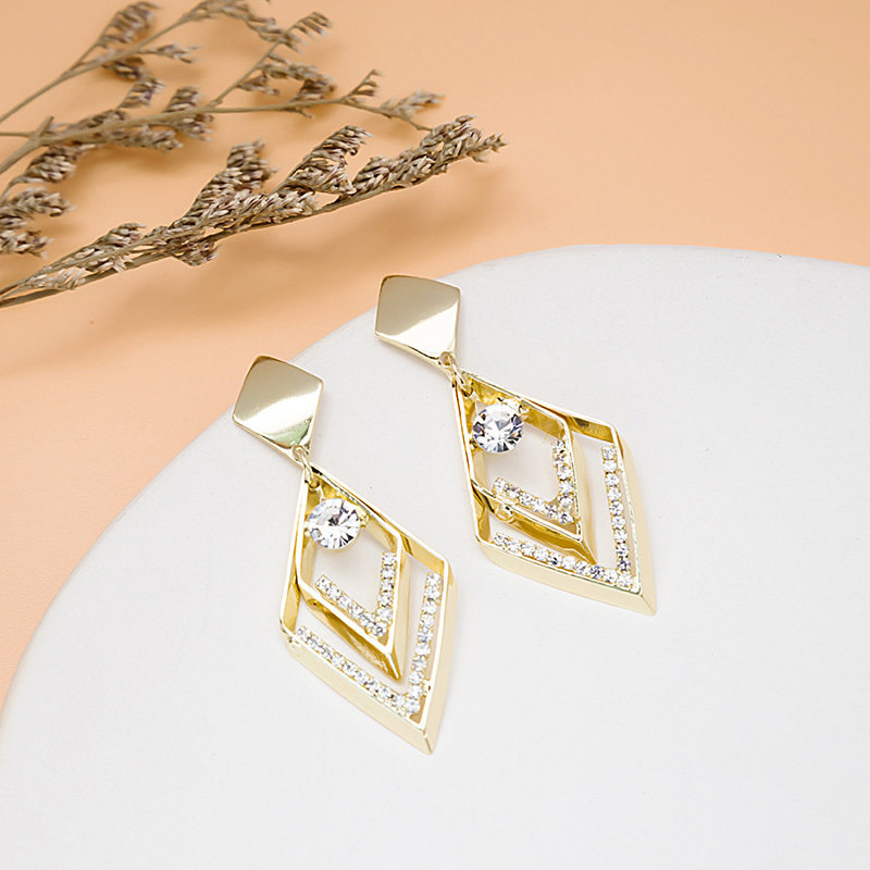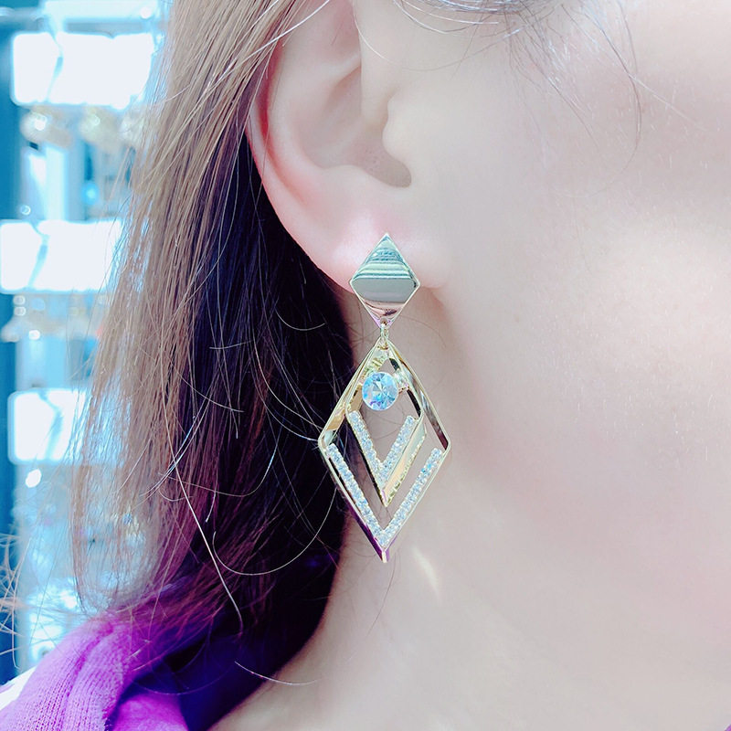 925 Rhomboid East Gate Geometry New Earrings 2021 Silver Needle Tide Inlaid Drill Crystal Earbuke South Korea Temperament Earrings