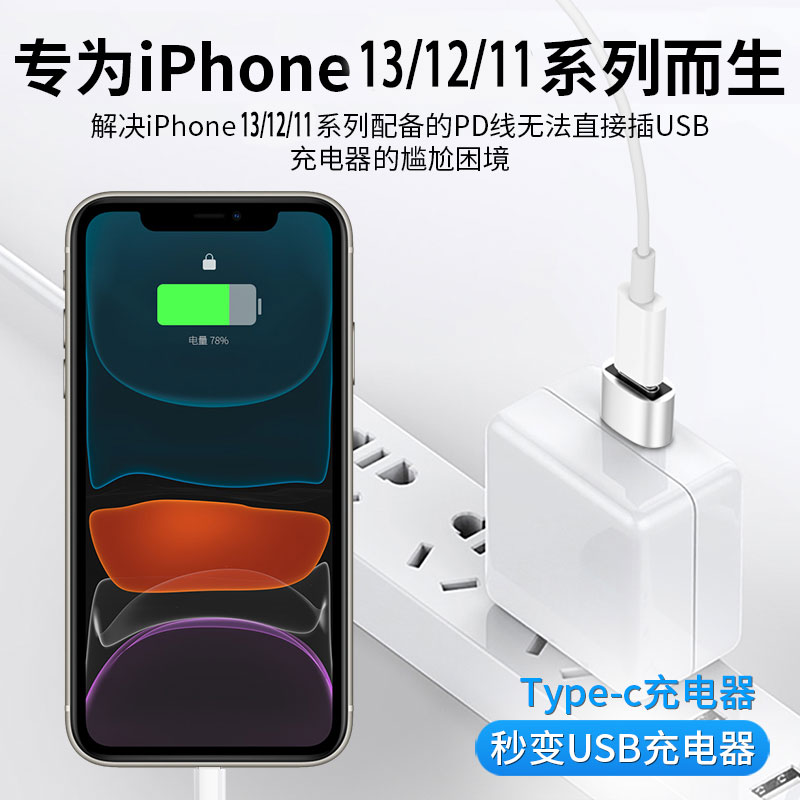 Apply Apple 13 phone charging line adapter iPhone12 mobile charging PD fast charging data line 11promax converter Typec turn USB conversion head mini car