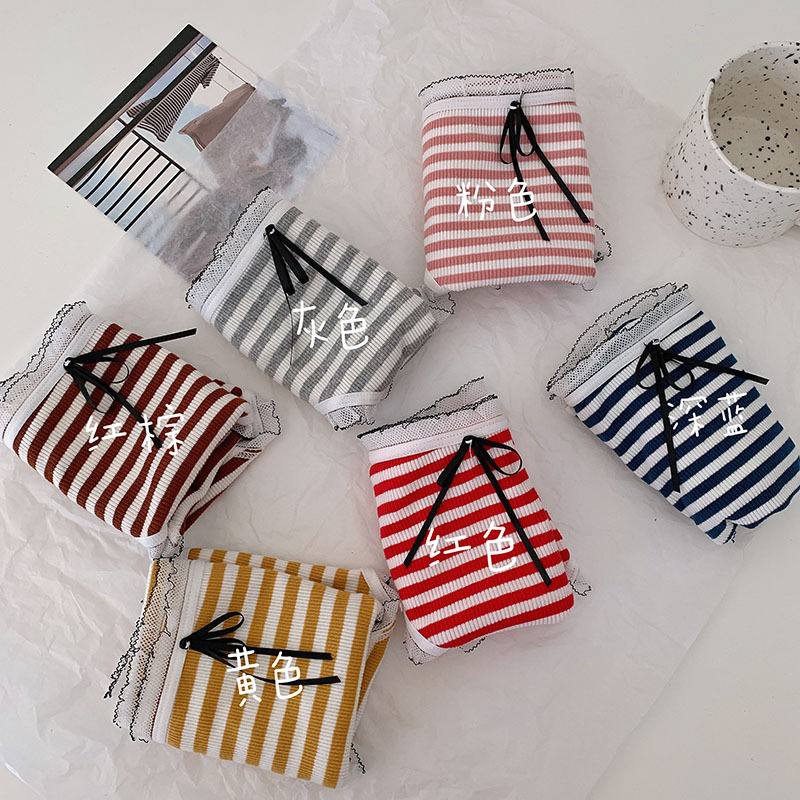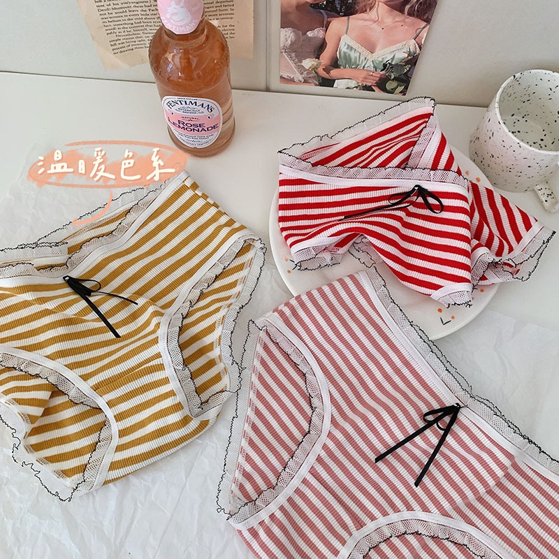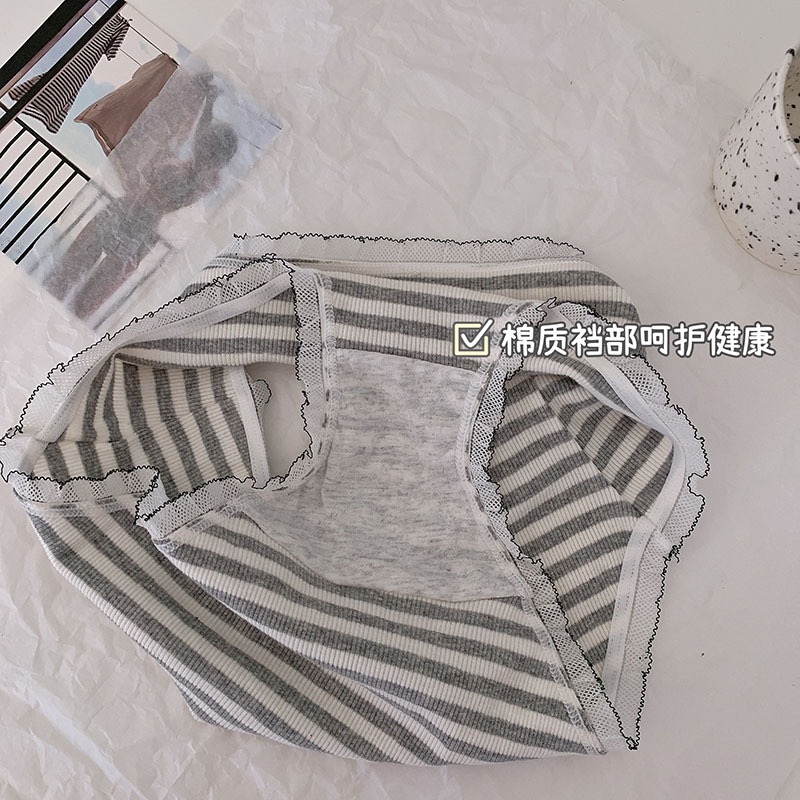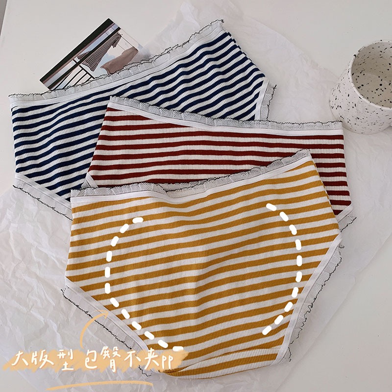 3 JK striped underwear lady cotton pure cotton antibacterial autumn girls in mid - waist large size MM girls breathable
