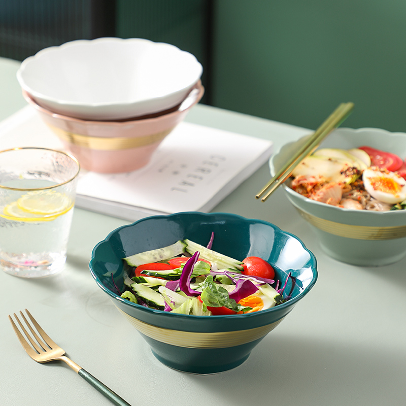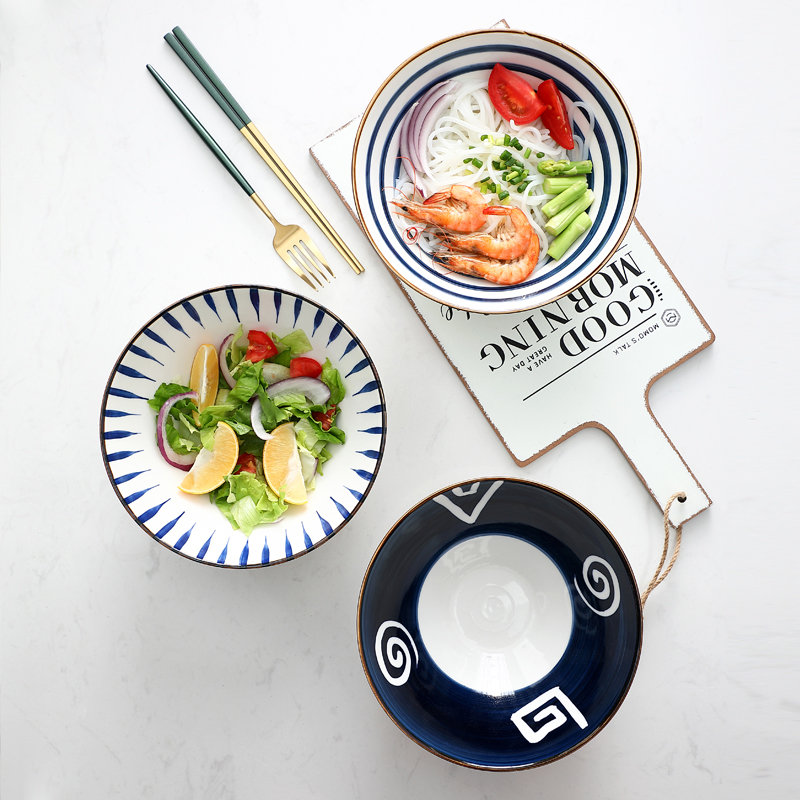 Set items (Qingkura special price) 4 Number of large number pulling noodles Bowl Soup Bowls Creative to eat Ceramics High Face Value Infighting Ogasawara-Taobao
