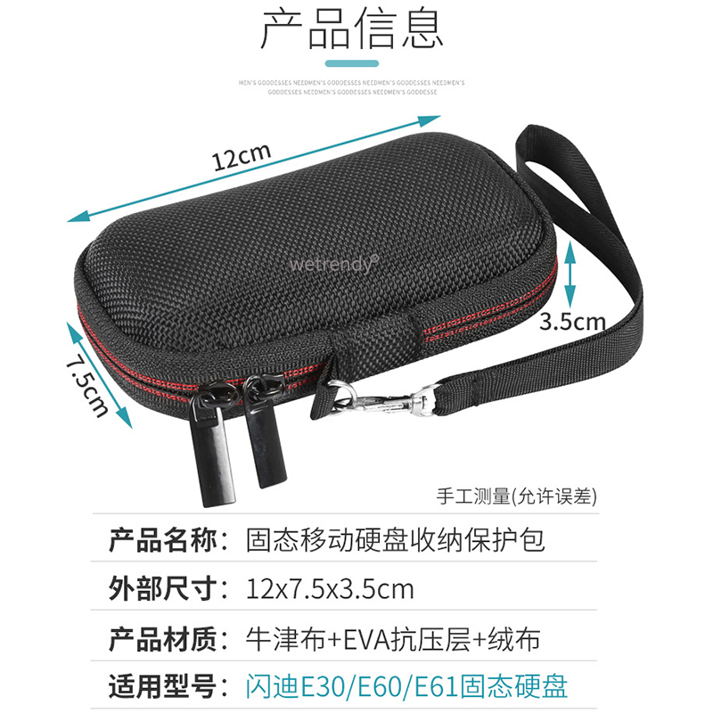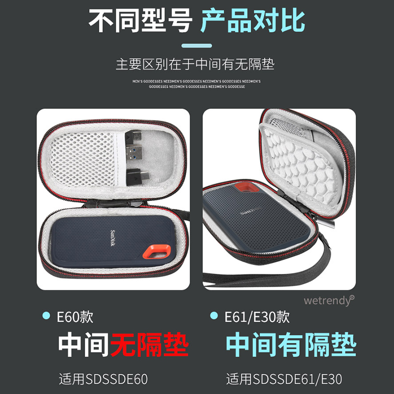 Applicable SanDiskE60 carry-on hard disc bag E30 E61 Solid hard disc protective case SDSSDE61 containing bag hardshell