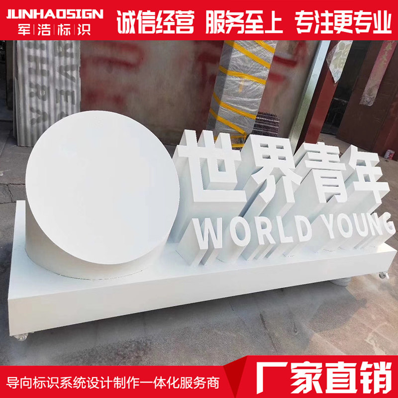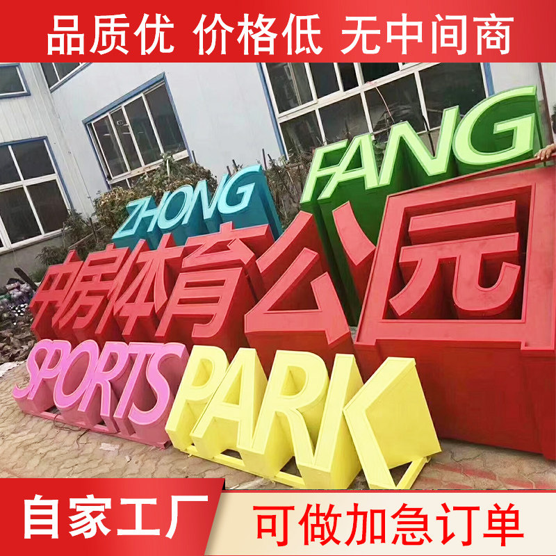 Stainless steel double-sided 3D three-dimensional word baking paint luminous tin floor large landscape slope word customized outdoor