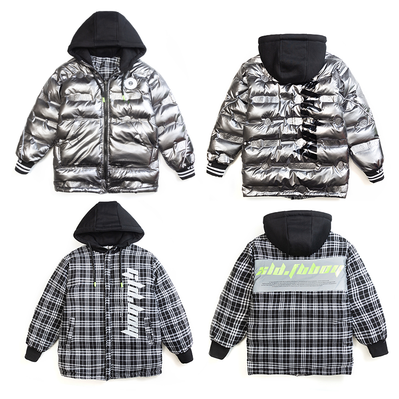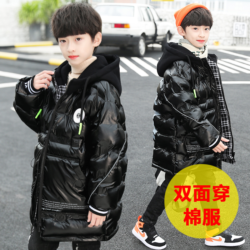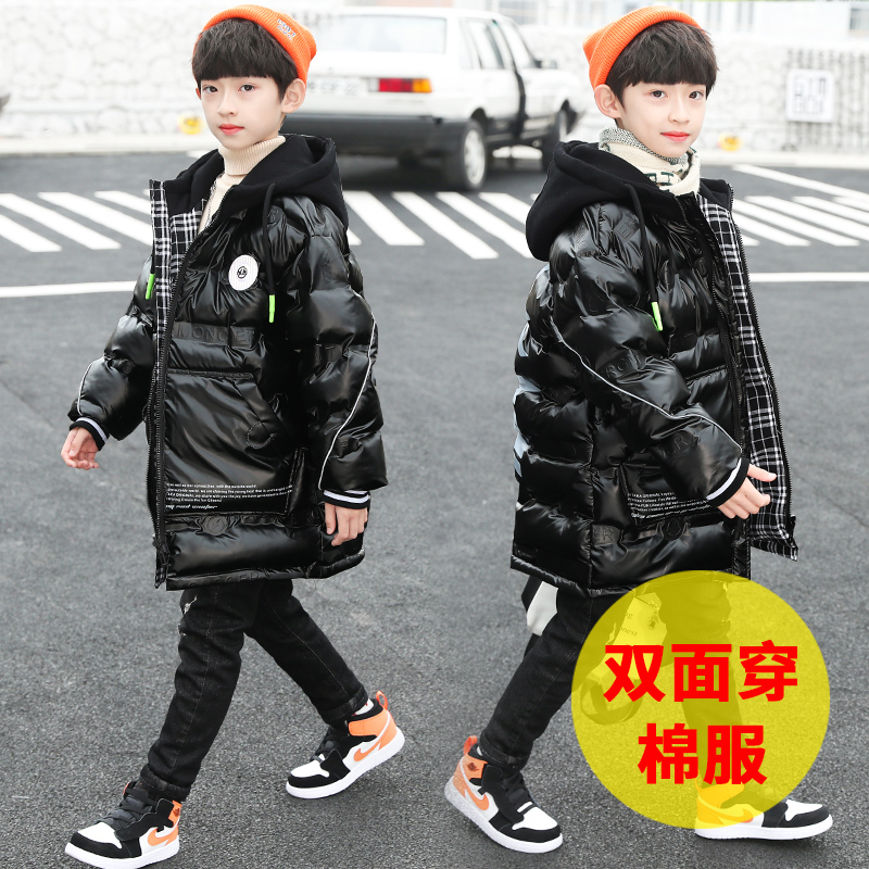 Boy's two sides wear cotton clothing winter clothing 2021 new winter bright face cotton clothes Children's men's big boy cotton padded jacket Chaoyang pie