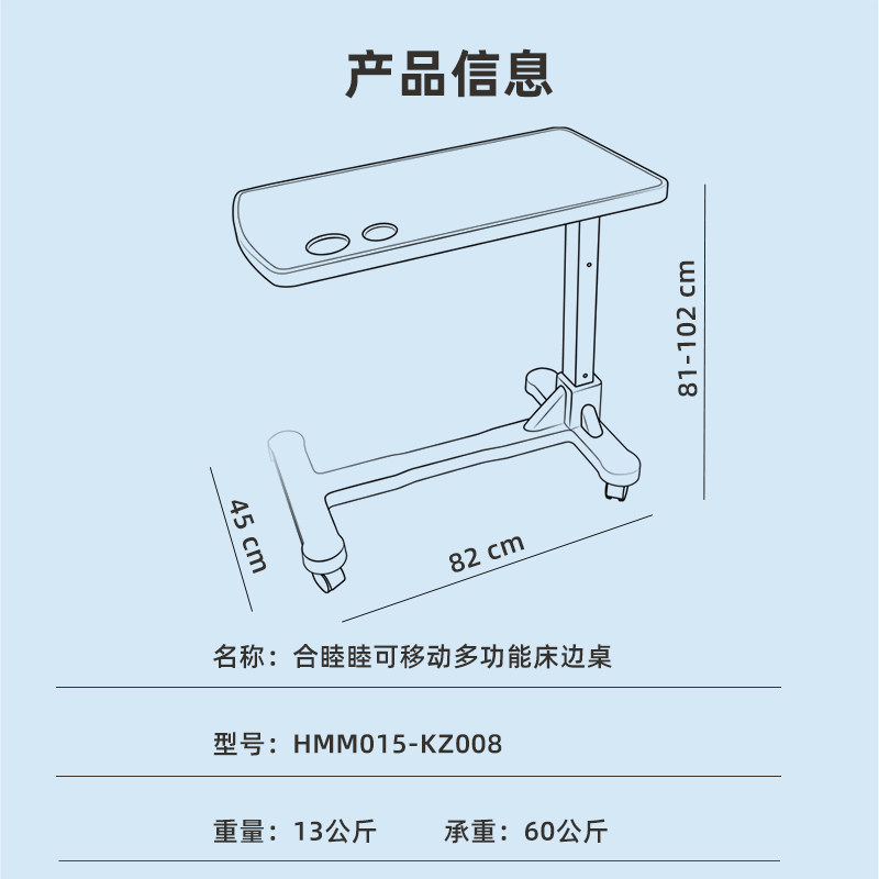 Hemu multifunctional ABS bedside table hospital bed mobile dining table lifting integrated mobile nursing table with wheels