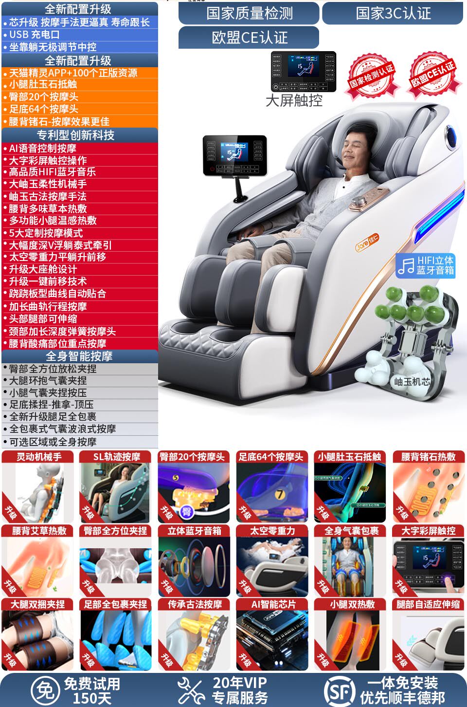 Black (flexible acupoint massage, multi-part press, dual movement press) black (sleep aid technology, whole body simulation, waist, back and leg press) (luxury massage) black, large screen, deep V floating, zero weight, back manipulator