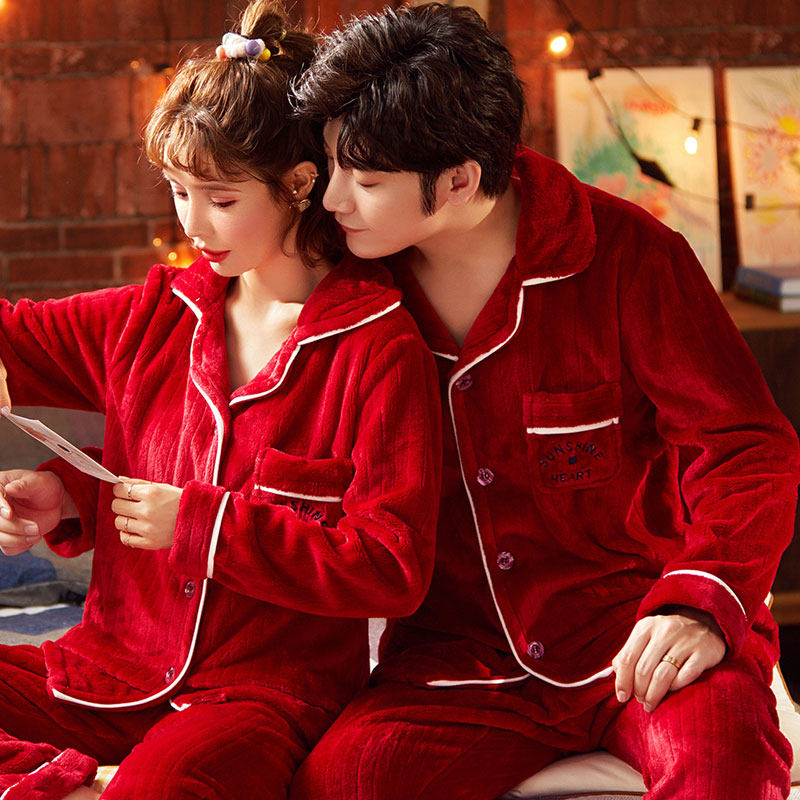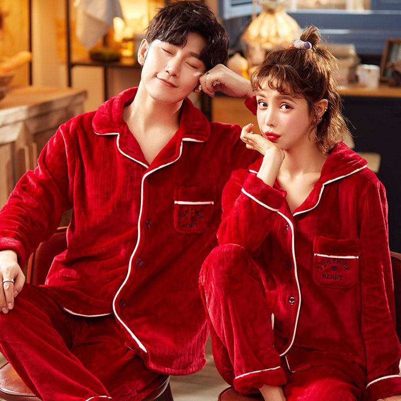 Wedding Pyjamas Newlyweds Suit Autumn Winter Ladies Big Red brides men Coral Fleece of the Year of the Tiger