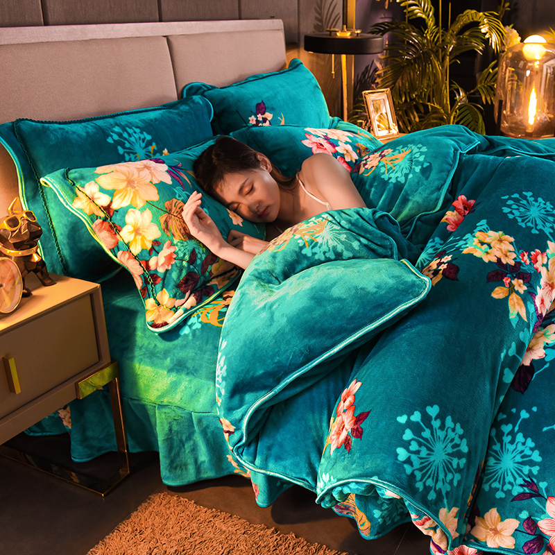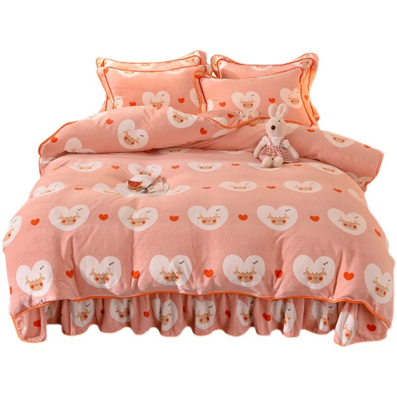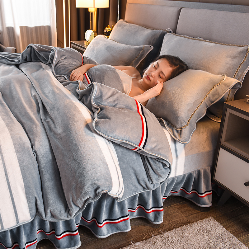 Luxury Fuanna Home Textiles Four-piece Gold Mink Fleece Milk Fleece Thickened Warm Coral Fleece Winter Bed Skirt