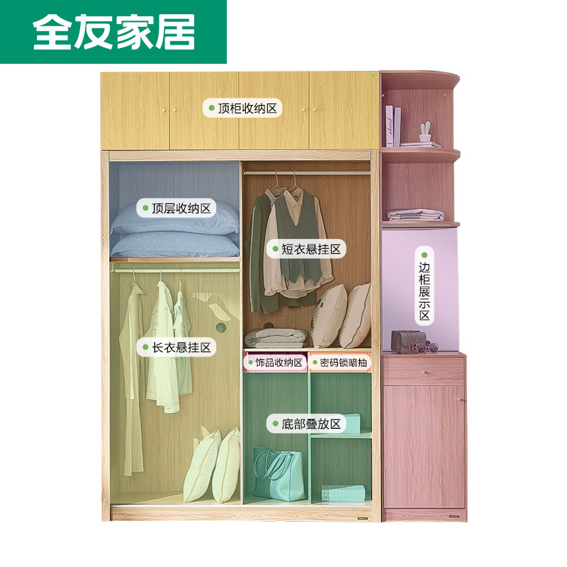 Full Friends Home Ramen wardrobe Modern minimalist Push-pull Two-door Wardrobe Sliding Door wardrobe Wardrobe Closet