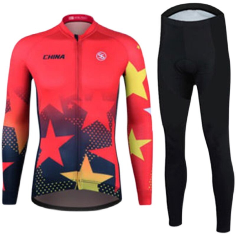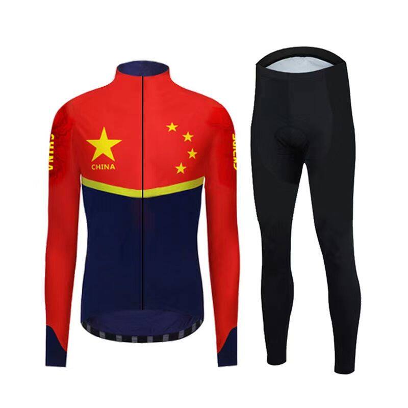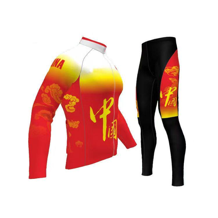 Chinese wind grab long sleeve autumn winter cycling suit bicycle team edition clothing warm and comfortable