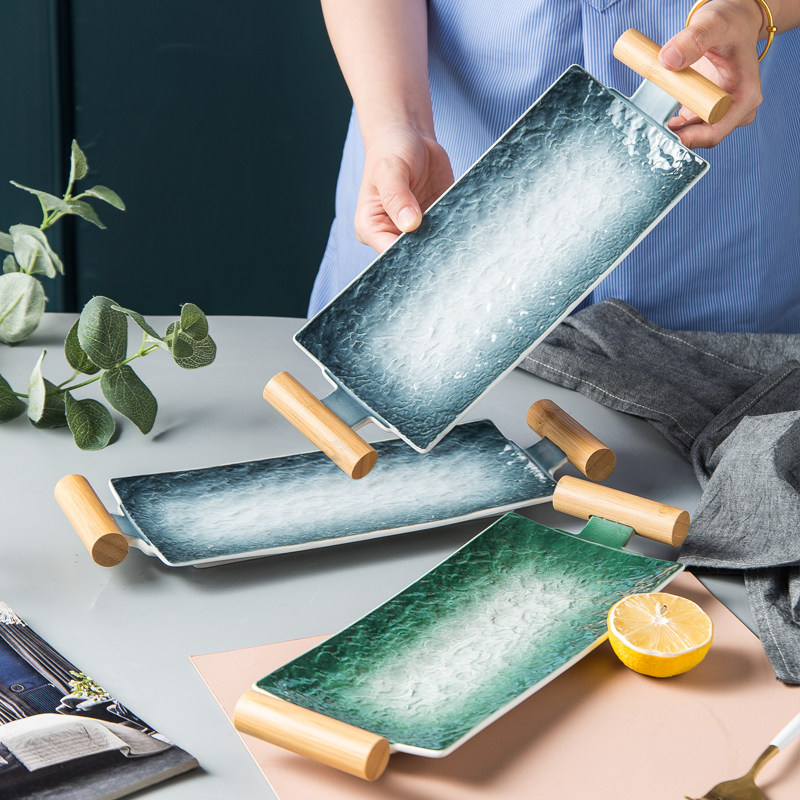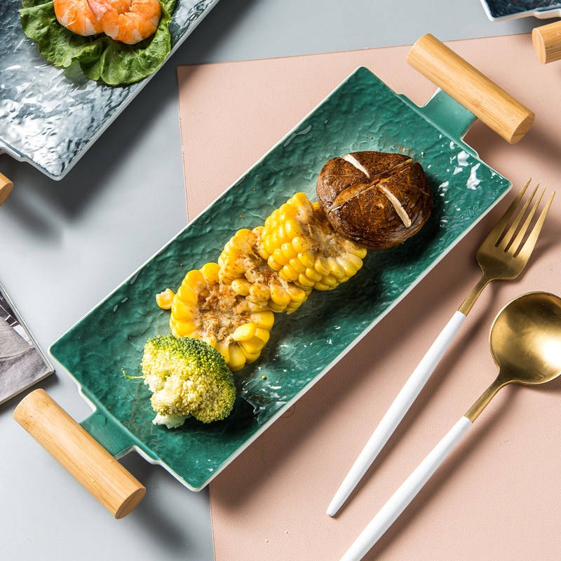 Japan-style rectangular sushi count heart snack dessert tray minimalist home creative Western buffet Steak Tray Ceramic Cutlery