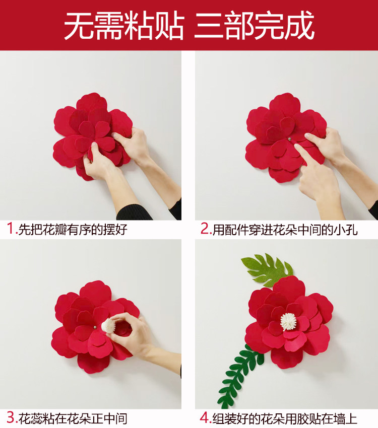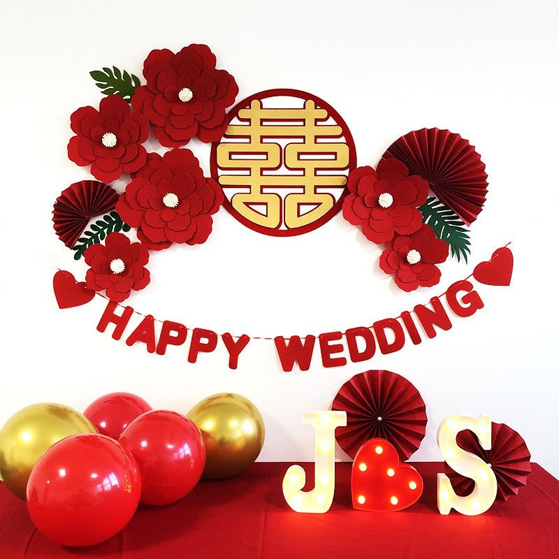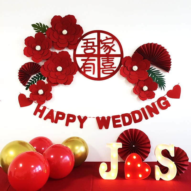 Wedding Wedding House Placement Decoration Suit Men's Party Woman Square Bedroom Bedside Background Wall Plan Net Red Solid Flowers